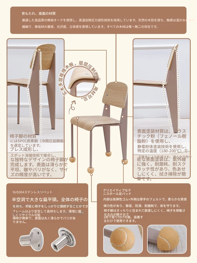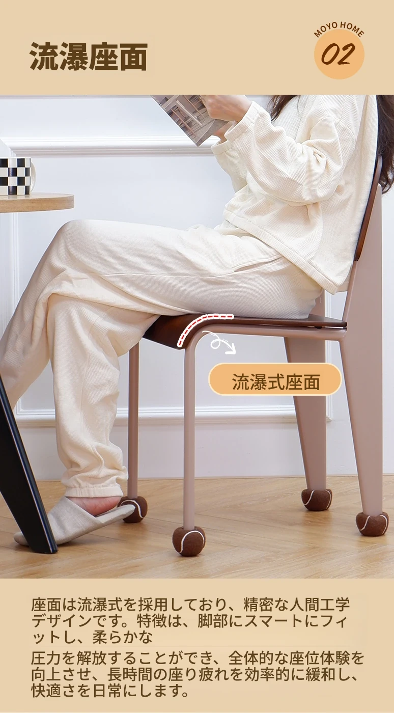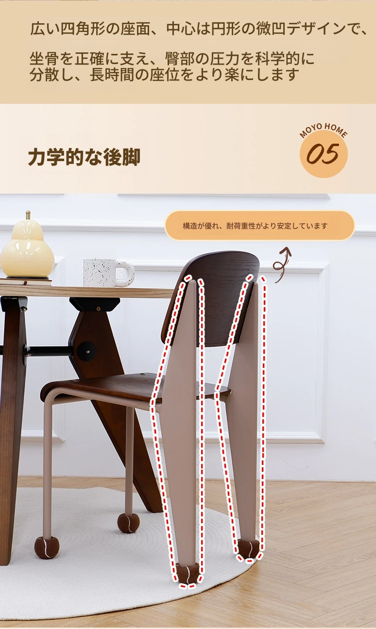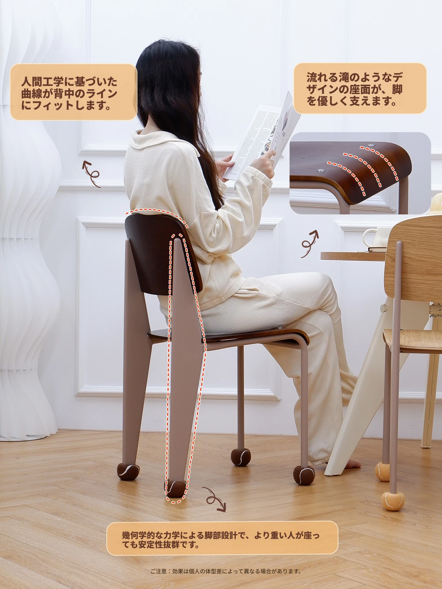 居美優の実木製ダイニングチェア - おしゃれで高品質なデザイン、コンパクトサイズで収納も簡単!静音設計で、どんな食卓にもぴったり。小さなお部屋にも最適な一脚をお楽しみください!