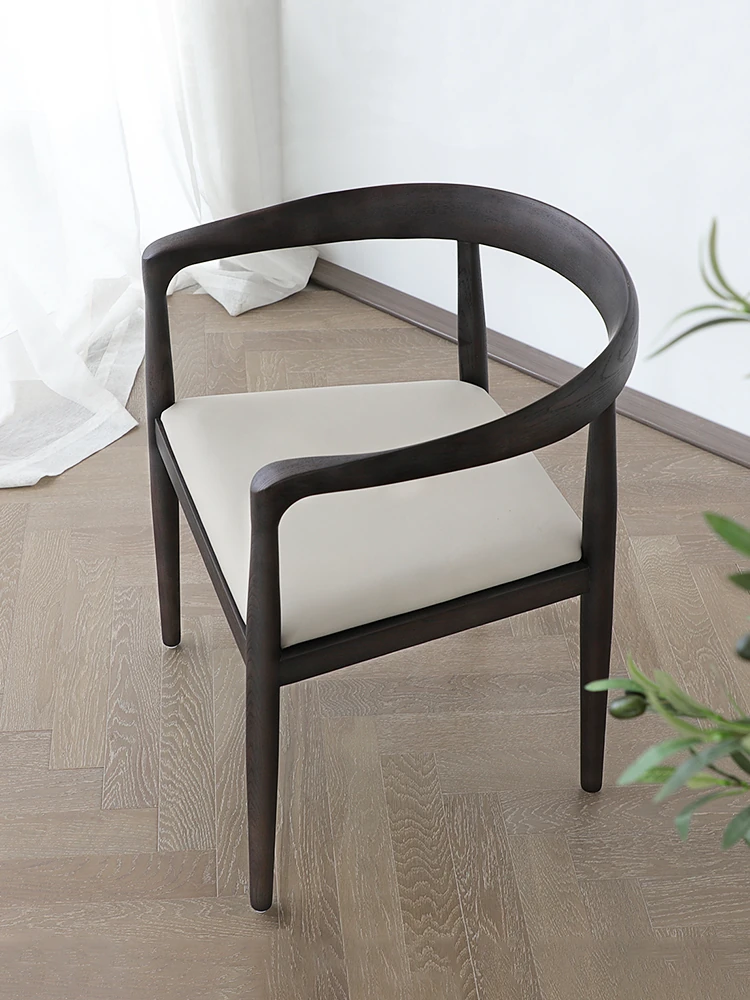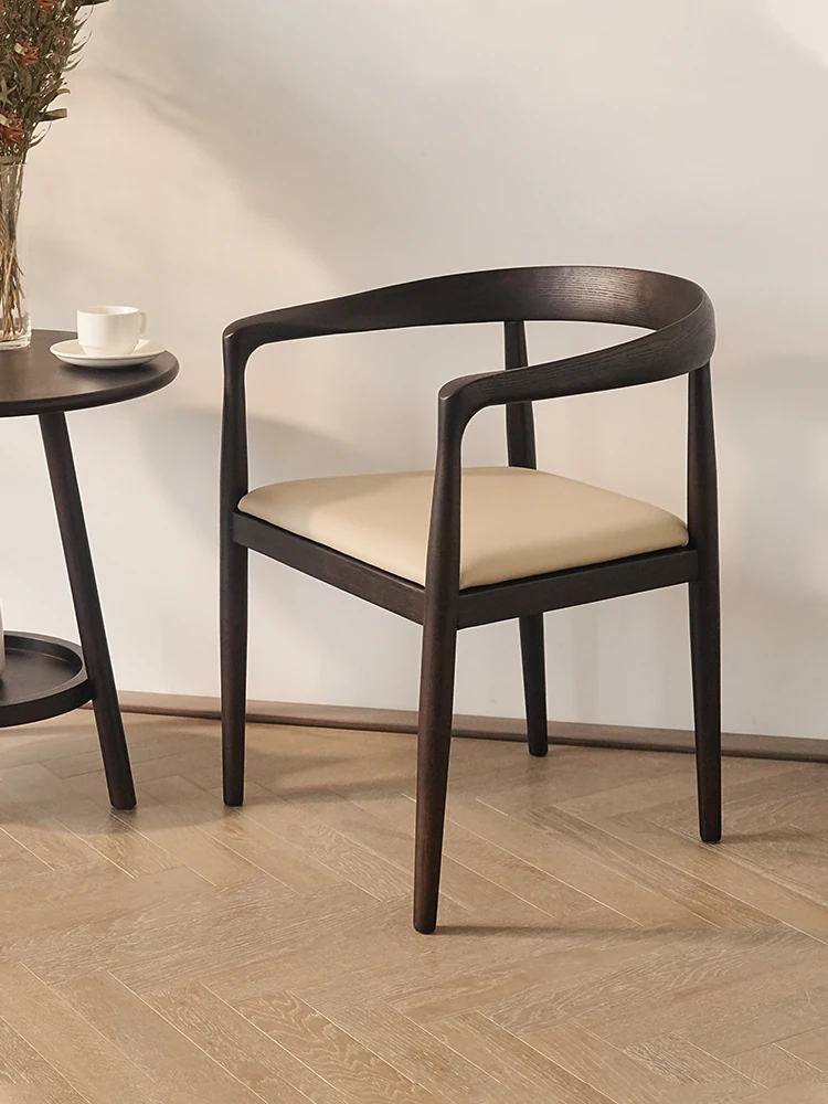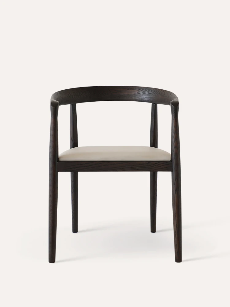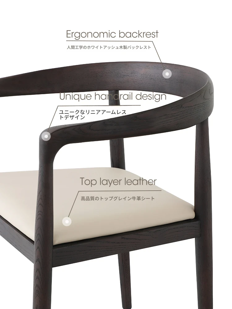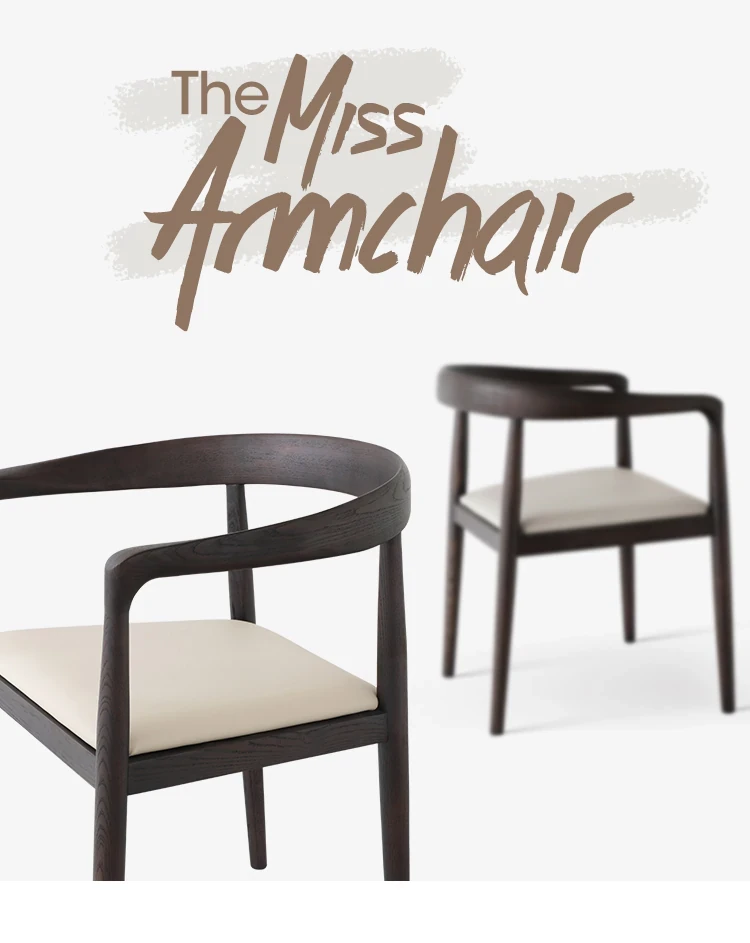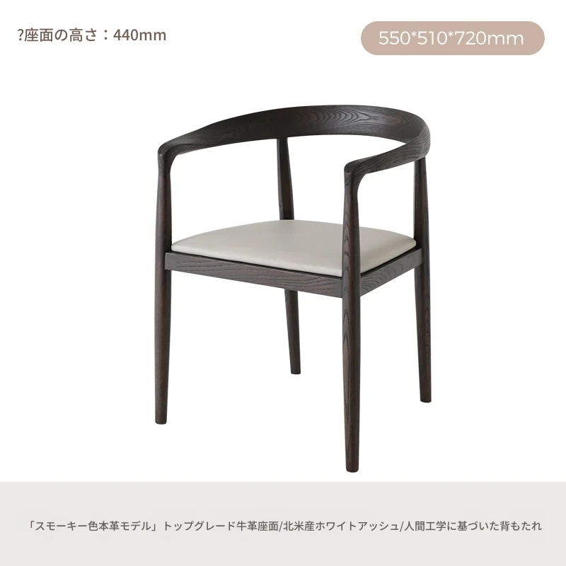 ミスアームチェア|イタリアンミニマルデザインの真皮スモーキー色木製ダイニングチェア|島台椅子に最適!おしゃれで快適な食事空間を演出します。
