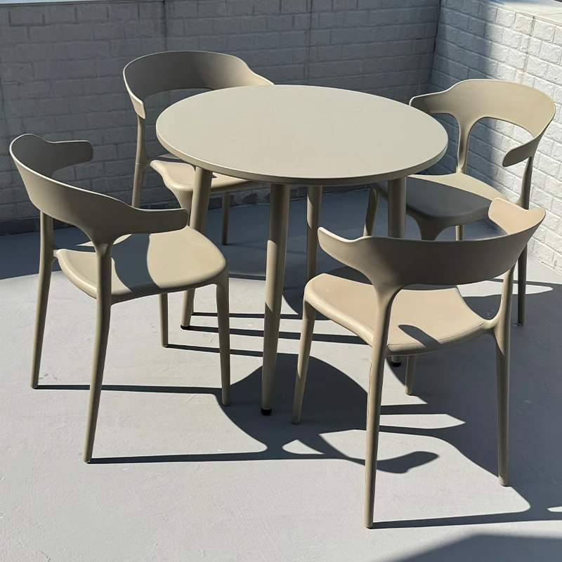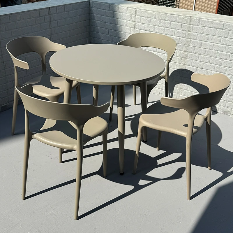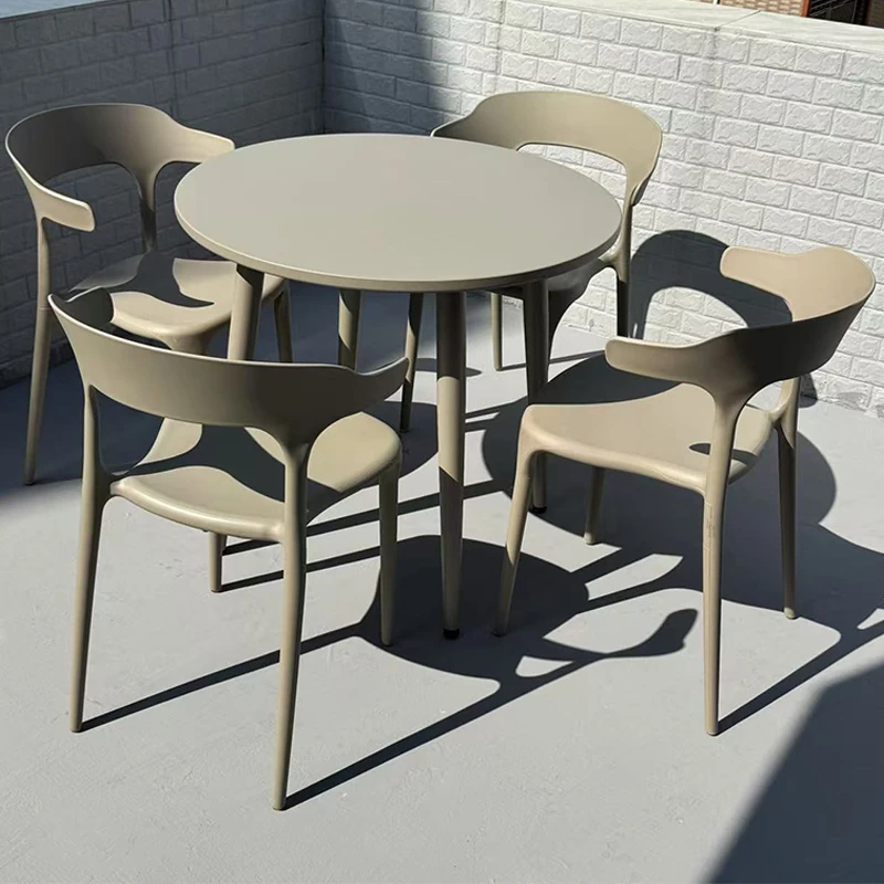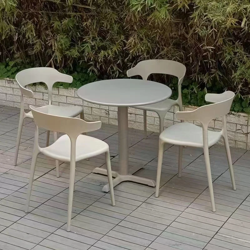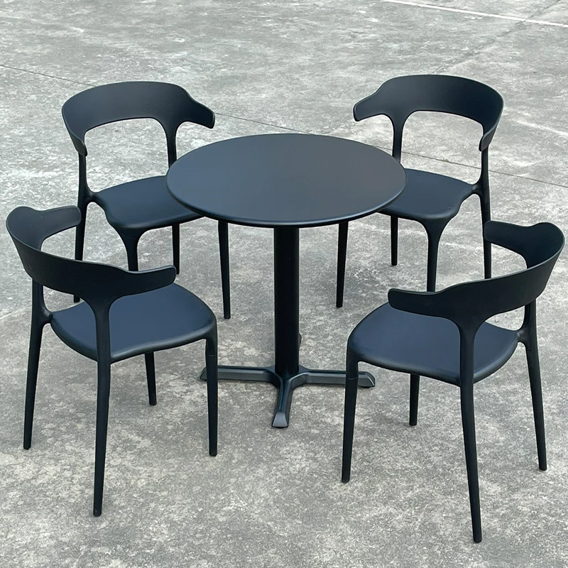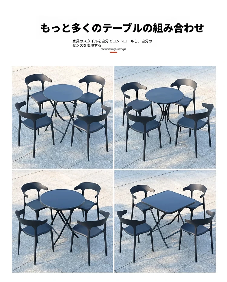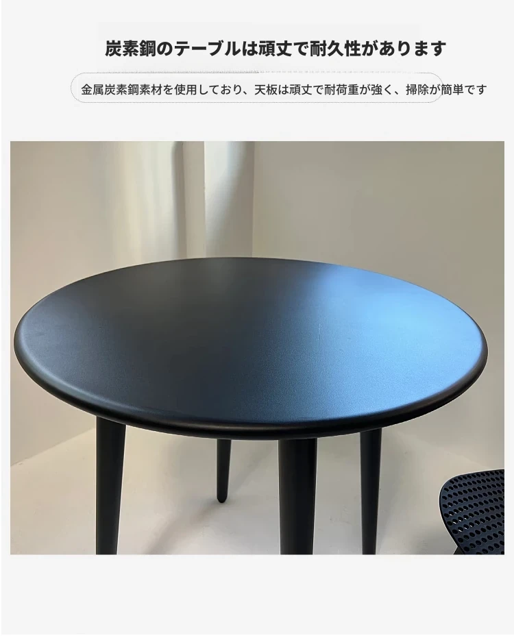 インスタ映え間違いなし!おしゃれなプラスチック製チェアと炭素鋼ラウンドテーブルのセット。アウトドアやバルコニーに最適なスタイリッシュなデザインで、リラックスしたひとときを提供します。家でのカジュアルな会話にもぴったり!