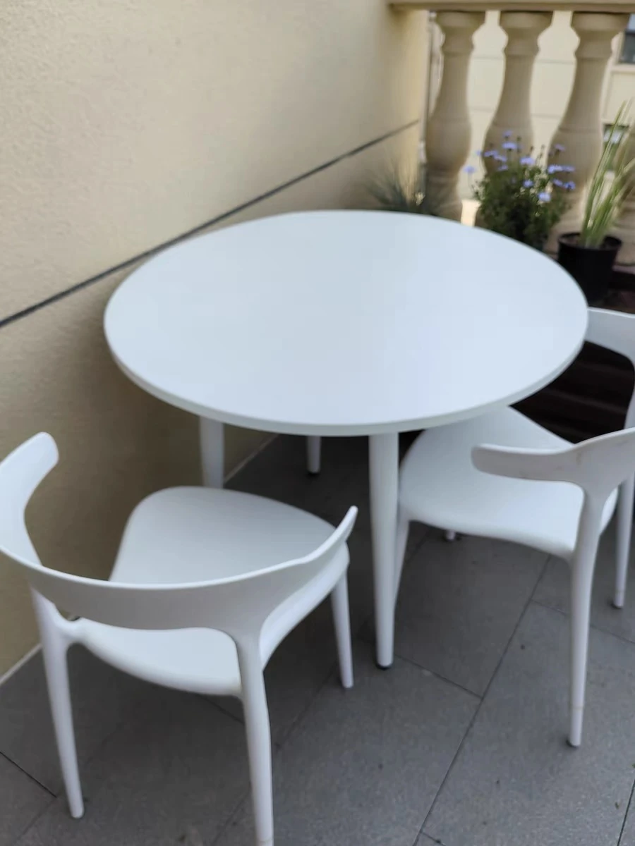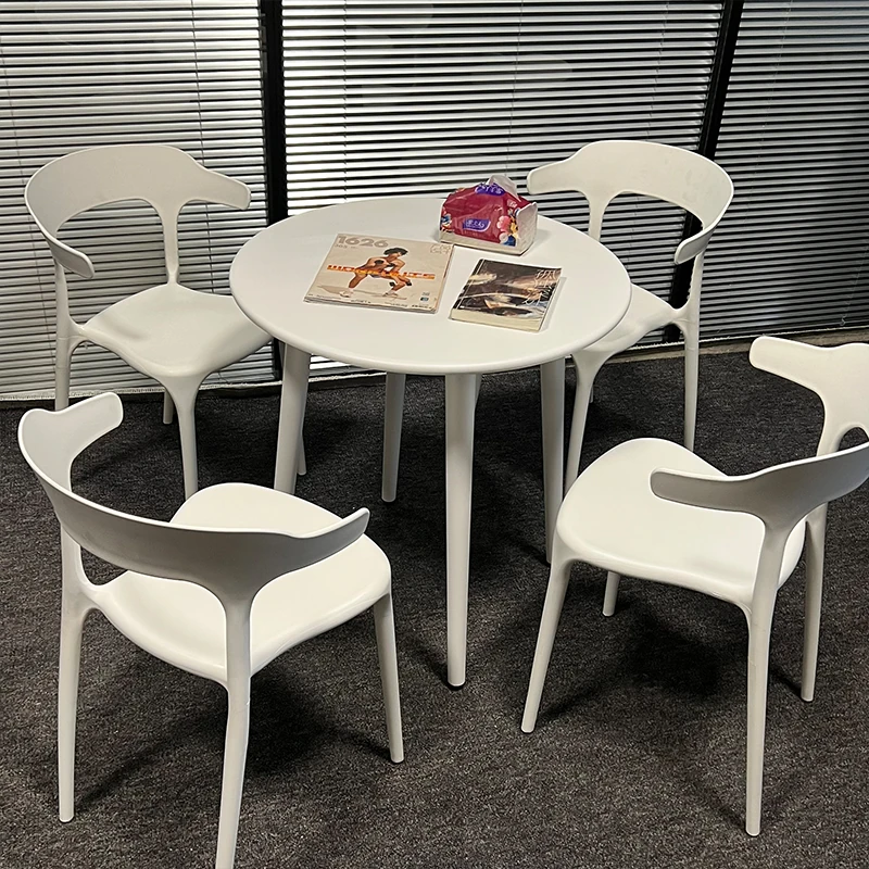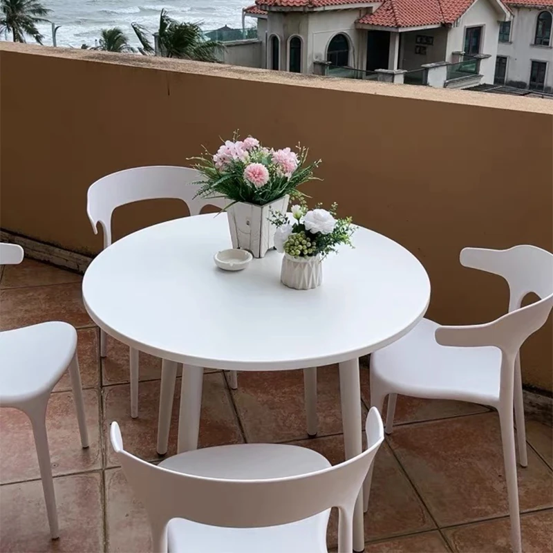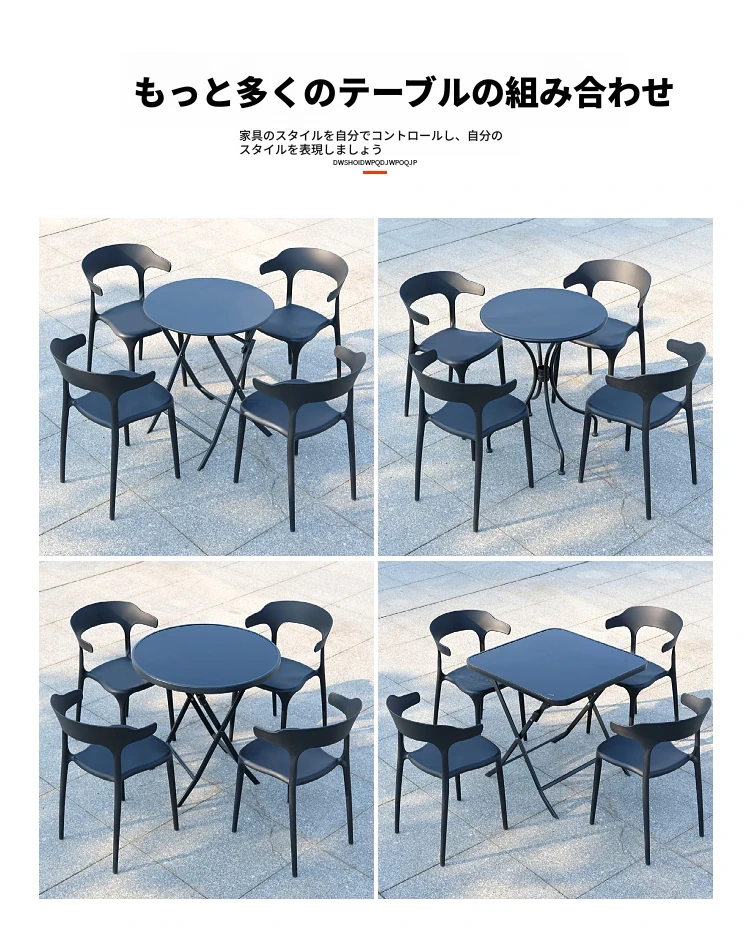 人気のテーブルと4椅子セット!おしゃれな長方形のプラスチック製カフェテーブル。アウトドアやバルコニーに最適なリラックススペースで、友達との楽しいひとときを演出します!