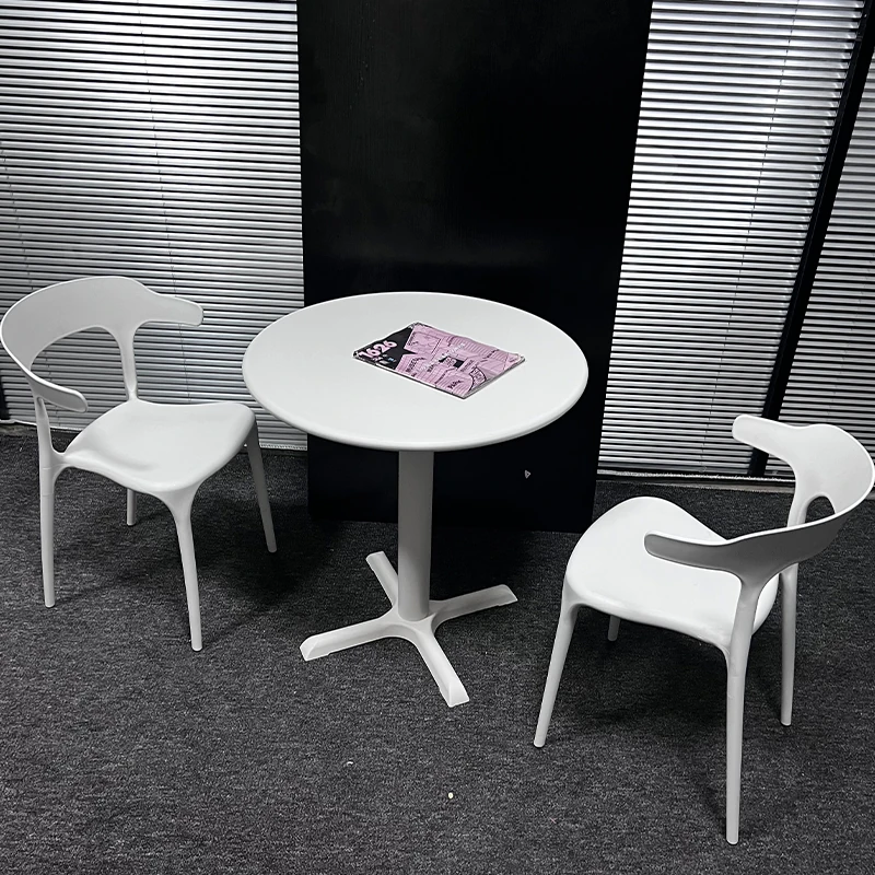 【ホワイト】2脚+80cmカーボンスチール丸テーブル