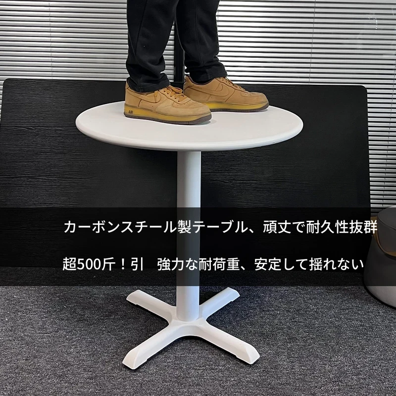 【ホワイト単体テーブル】70cm立柱カーボンスチール丸テーブル