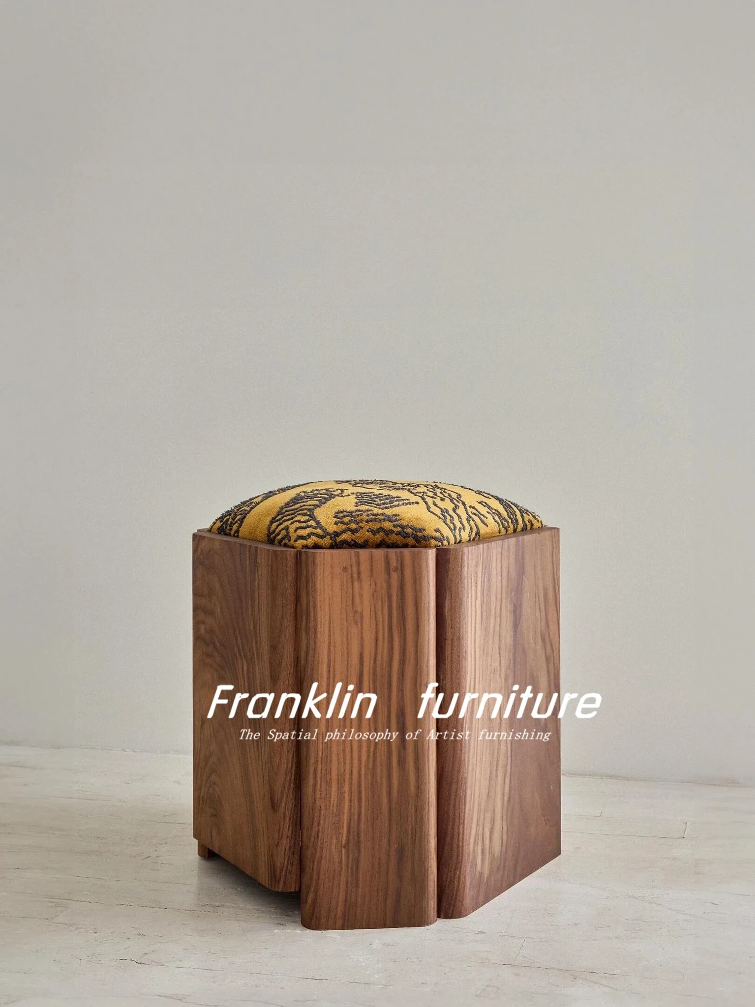 ヴィンテージ風の無垢材スリッパベンチ、フレンチクリームスタイルのトラ模様メイクアップスツール。デザイナーによるおしゃれなサイドテーブルとしても最適!お部屋に洗練された雰囲気をプラス!