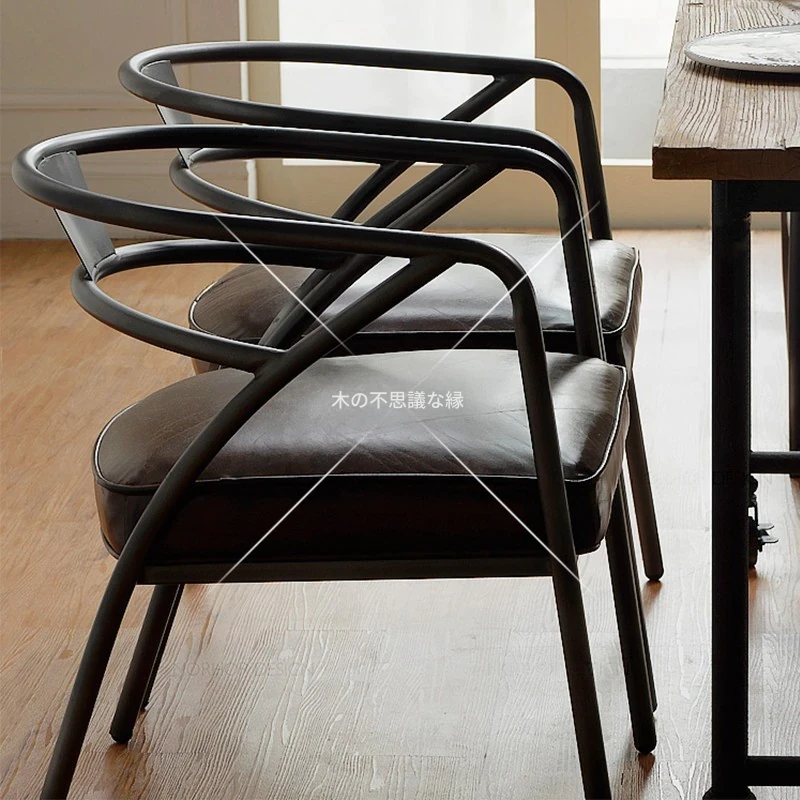 アメリカンスタイルのアイアン製オフィステーブル&チェアセット - シンプルでおしゃれ、カフェやバーにぴったりのリラックス空間を演出!お洒落なミルクティー店やレストランにも最適な背もたれ付きのダイニングセット。