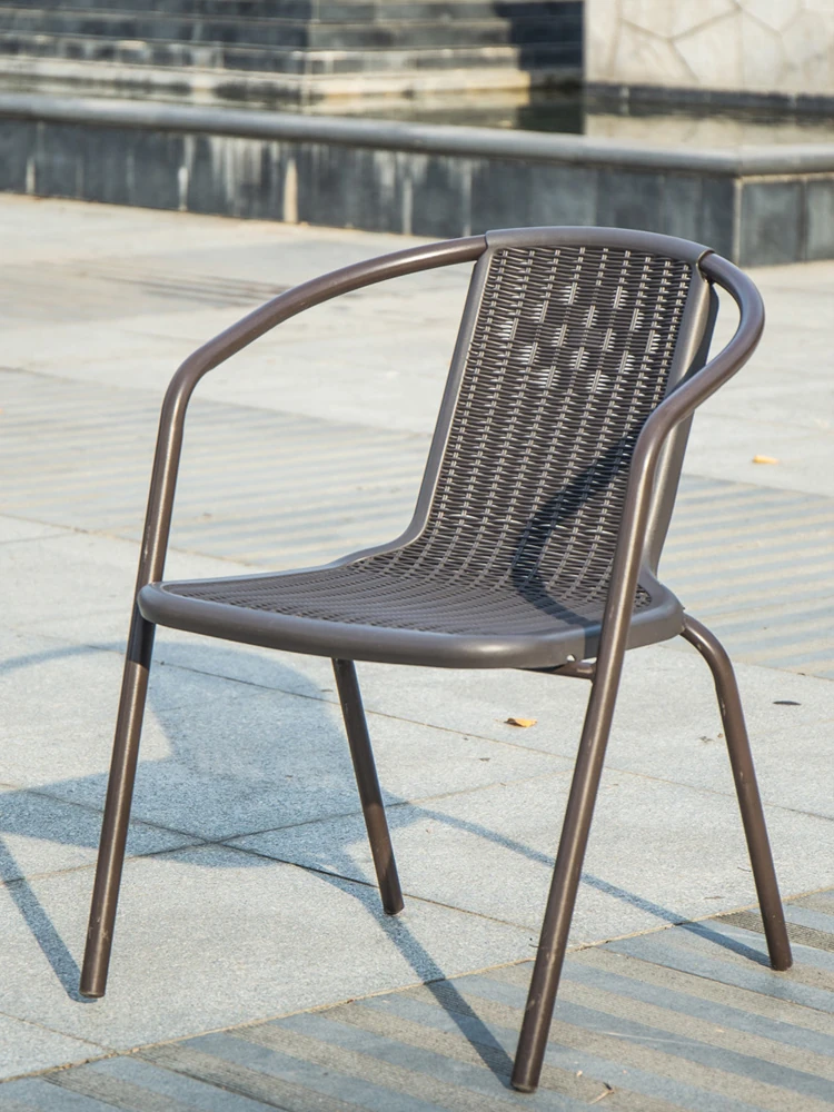 アウトドアリラックスチェアセット|ティーカフェにも最適!家庭用バルコニーにぴったりな軽奢感あふれるラタン風プラスチック製の一人掛け背もたれ付きチェア。おしゃれで快適なひとときを楽しんで!