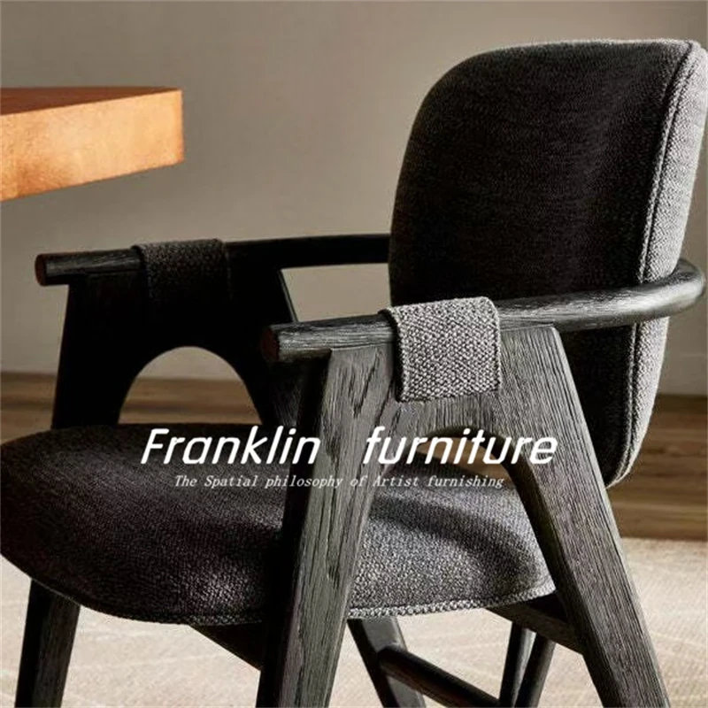現代中式全無垢材ダイニングチェア、家庭用の完成品、背もたれ付きの小型テーブルチェア。小さな部屋やホテル、レストランに最適な伝統的な組み木デザインの椅子です。快適さとスタイルを両立させた一品!