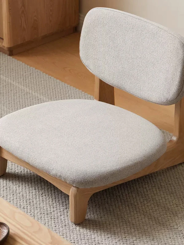 北欧スタイルの無垢材タタミ用ティーチェア - モダンでシンプルなリビングソファ・ロースツール、オーク材使用、和の心を感じるアームレストなしの新しいデザイン!